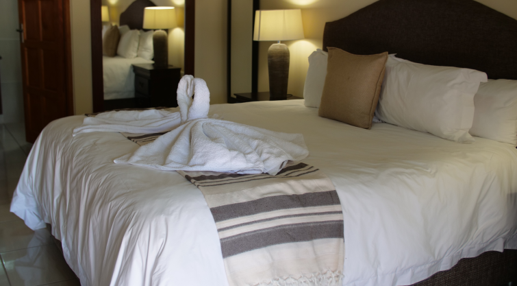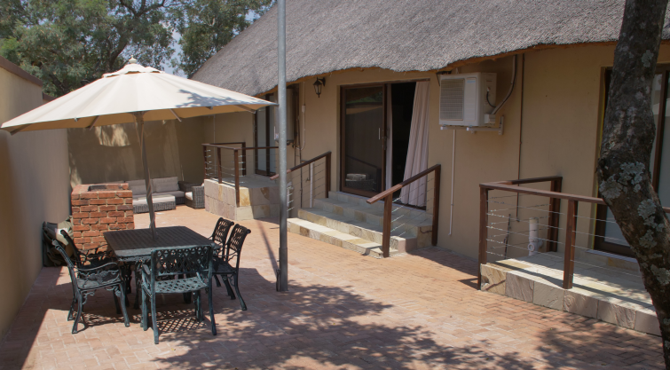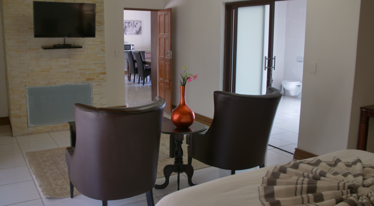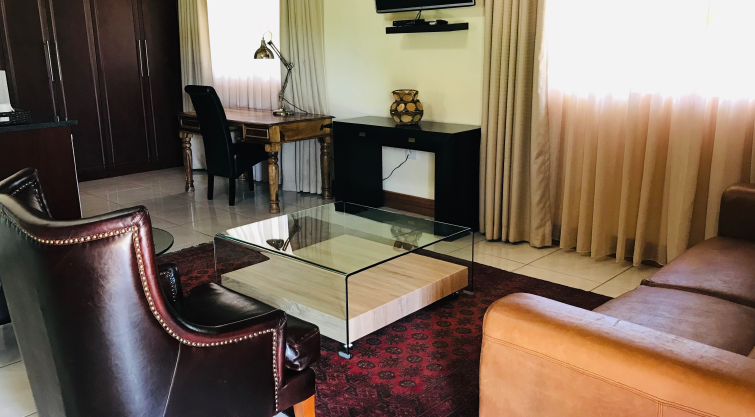 King-size Bed, Minibar Fridge stocked on request, Electronic Safe, DSTV bouquet, Shaving Plug, Air-conditioning, Tea & Coffee station and Living Room, Private Braai Area with chairs & couches