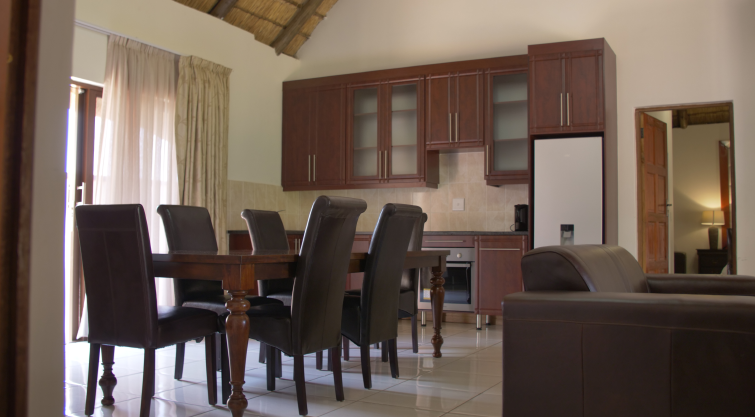 King size bed, minibar fridge stocked on request, electronic safe, DSTV bouquet, shaving plug, air conditioning, tea & coffee station and living room, WIFI, Full kitchen, private braai area with chairs & couches